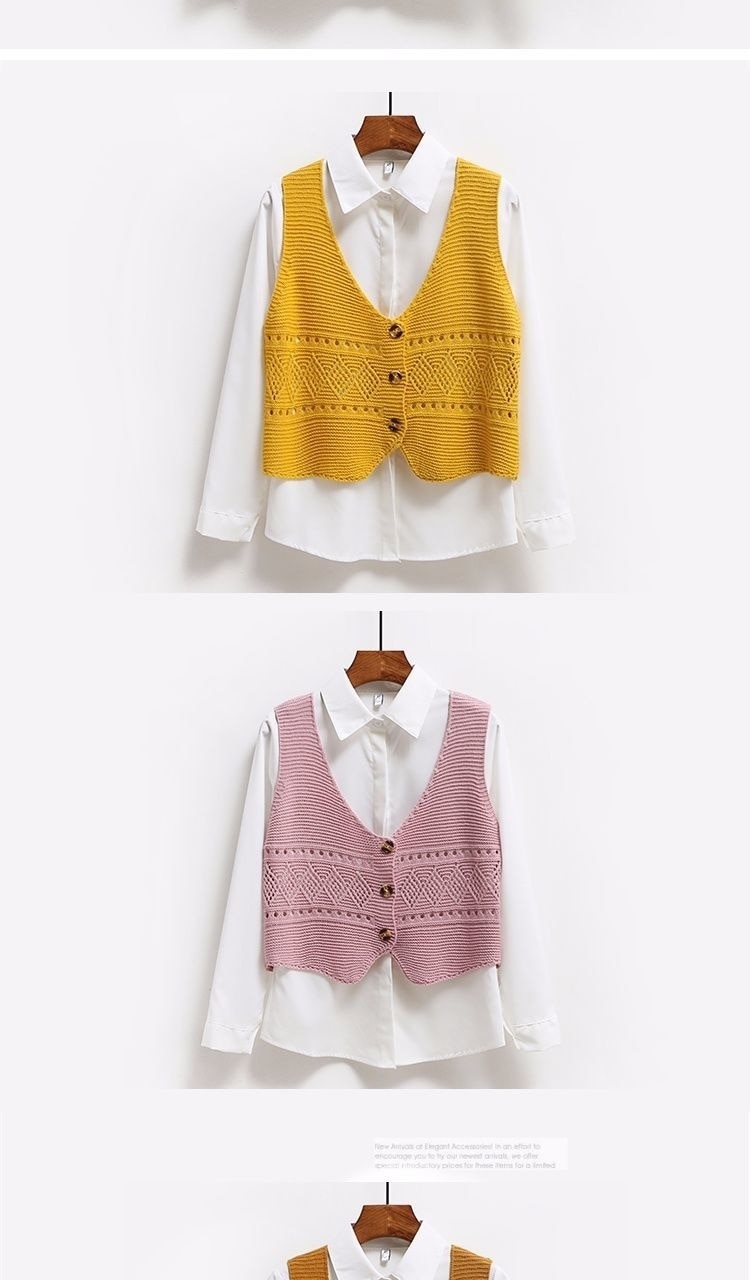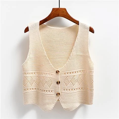 2025 Korean Fashion V Neck Loose Sleeveless Sweater Vest Women Knitted Hollow Out Single Breasted Short Cardigan Female Knitwear