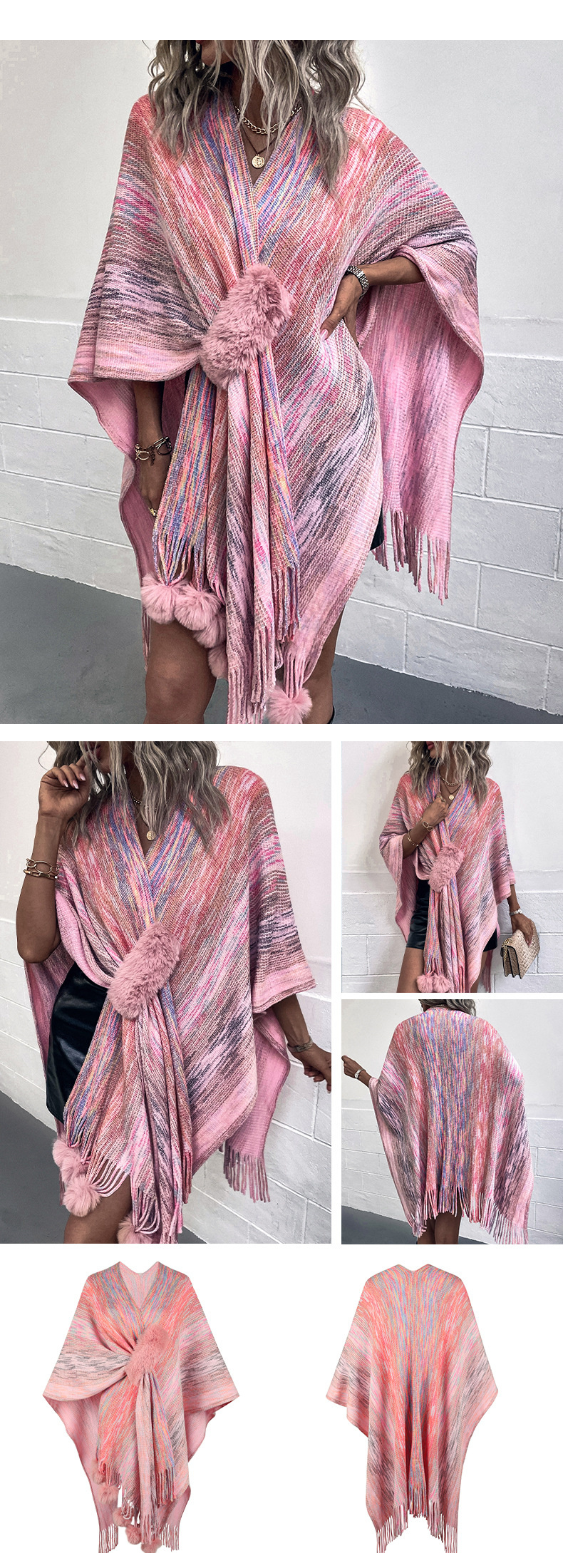 Rainbow Striped Poncho Knitted Tassel Shawl Coat Women Autumn Winter 2025 New Cape Cardigan Fashion Batwing Sleeve